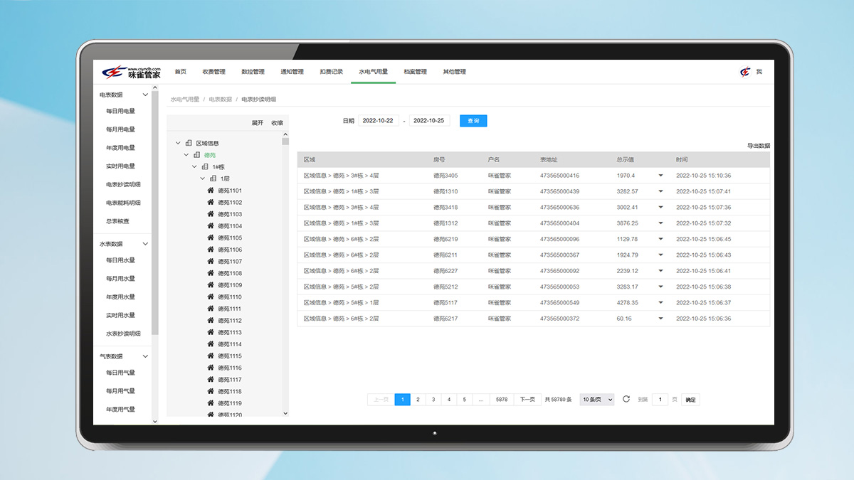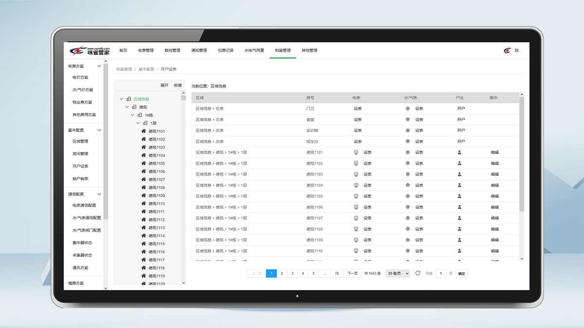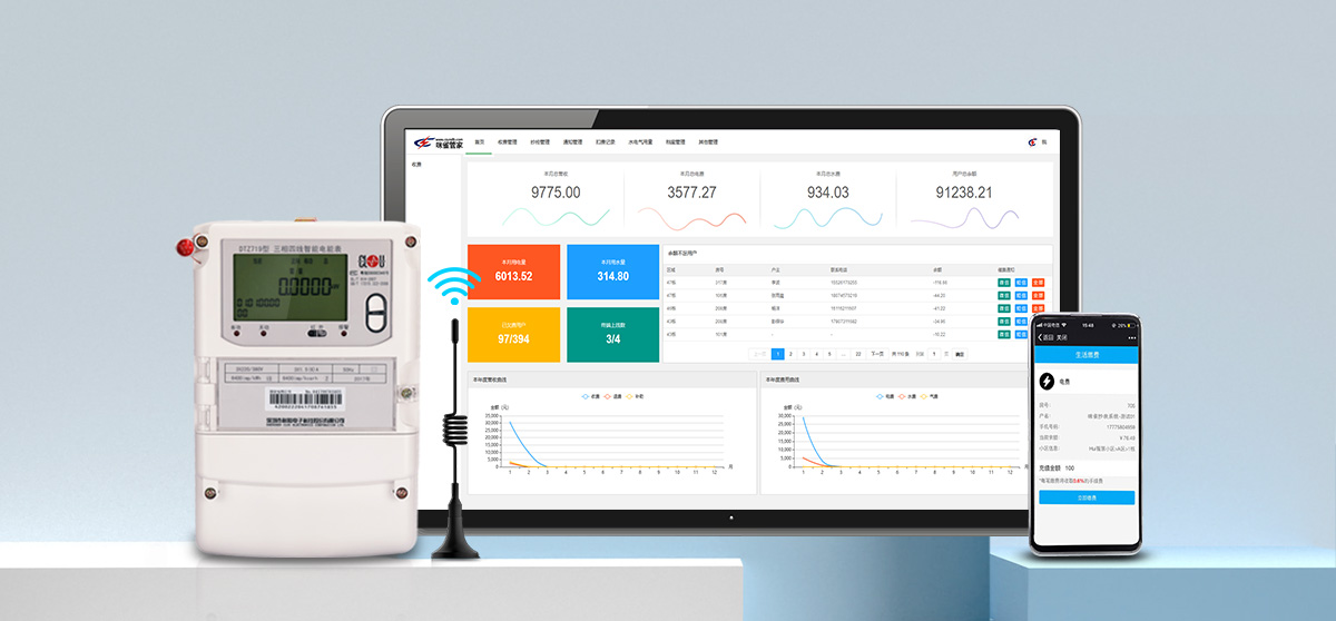 集水電氣熱表遠程抄表,手動/自動遠程拉合閘,手機遠程繳費,數(shù)據(jù)報表管理等功能及物業(yè)管理為一體的云平臺系統(tǒng)。